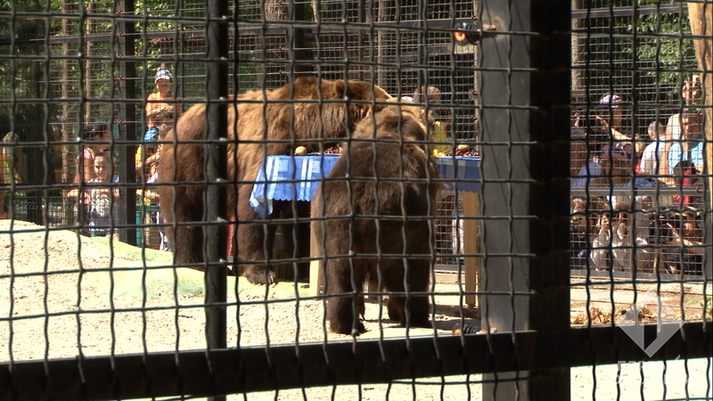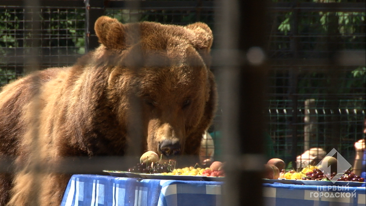 Першою в новий вольєр входить 16-річна ведмедиця Поляна, за нею її мати Феня. Вони обережно обнюхують святковий стіл і все, що на ньому лежить: персики, малину, агрус, черешню і мед. До новосілля співробітники зоопарку балують хижаків ласощами але визнаються і в звичайний день у тварин апетит чудовий.
