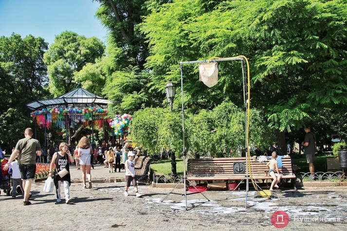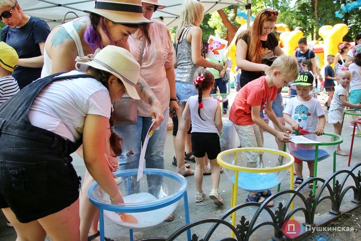 Розважальна програма почалася з самого ранку. По всій території одеського Міськсаду відбувалися активності: аквагрим, батути, солодка вата, майстер-класи. Після шоу мильних бульбашок дітям дозволили купатися у фонтані, де вони, озброївшись водяними пістолетами, влаштовали водні та пінні битви.