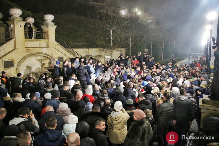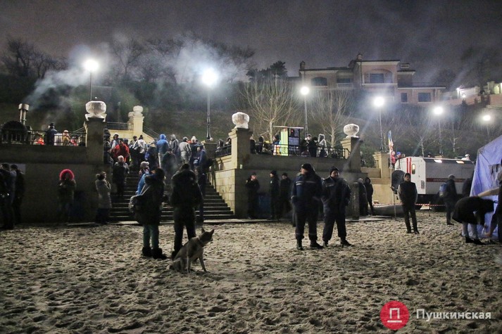 На місці чергували лікарі «швидкої», рятувальники і нацгвардейци. Основна маса людей «підтяглася» вже до півночі, щоб вже 19 числа скупатися і потім піднятися до священика: на алеї біля сходів він зібрав навколо себе велику кількість людей, читаючи молитви.