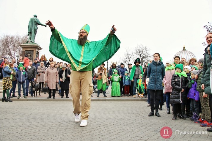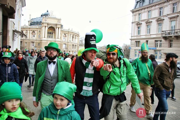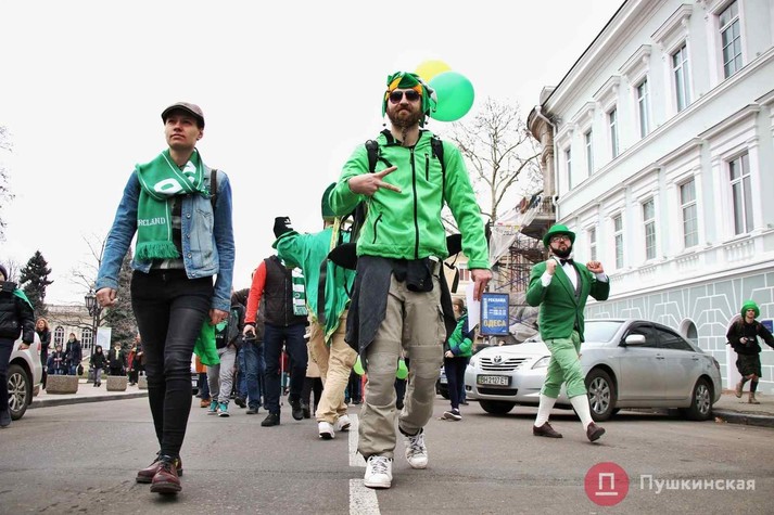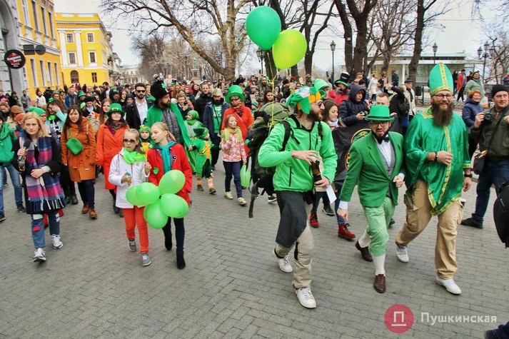 В Одесі 16 березня відзначили День святого Патріка - покровителя Ірландії. В обід «зелені чоловічки» пройшли по центру міста парадом і влаштували танцювальний флешмоб. На вечір заплановано типовий ірландський відпочинок в пабі під кельтську музику.