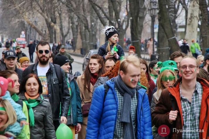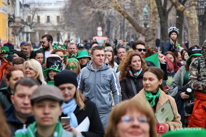 Від пам'ятника Дюку святкують пройшли парадом по Приморському бульвару і через Театральну площу вийшли на Дерибасівську. Кінцева точка - Міський сад. Нинішній парад в День святого Патріка - десятий за рахунком. У ньому взяли участь кілька сотень людей. Кожному обов'язково було мати хоча б один зелений елемент одягу.
