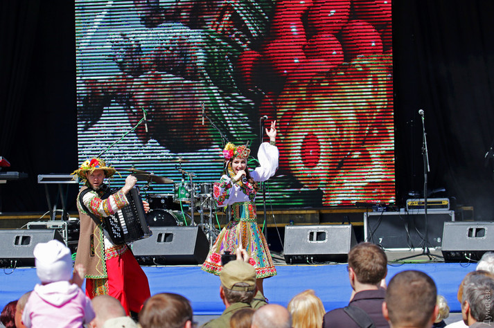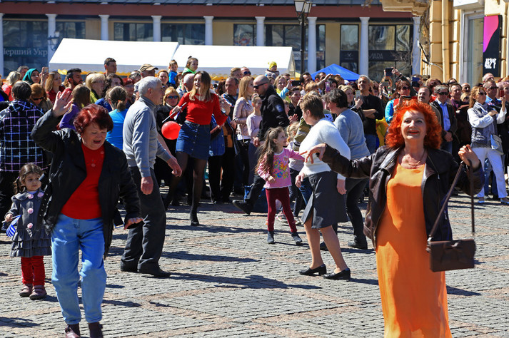 Площа перетворилася в велике літнє кафе з естрадою, на якій виступали народні колективи. Все почалося з українського гопака і народних пісень, які завели натовп. Сіртакі і інші грецькі танці стали виконувати, коли за столиками вже трохи «взяли».