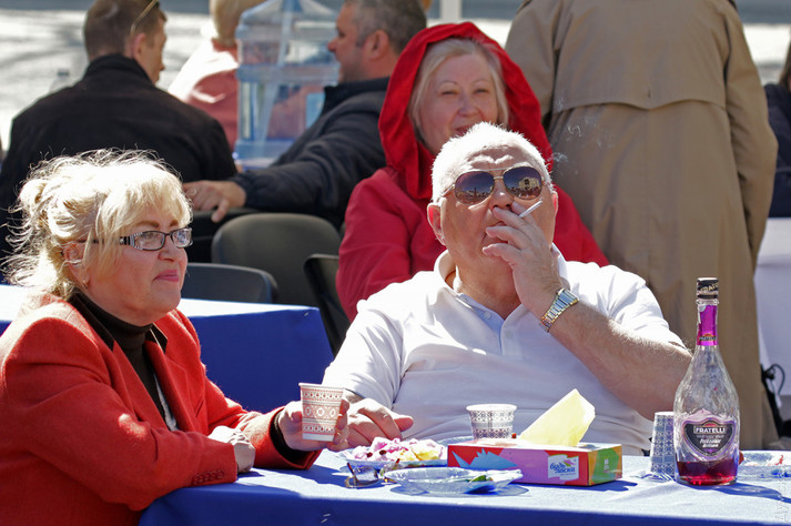 За столиками випивали і закушували - свято є свято. Кожен приходив зі своїм напоєм, але п'яних не було. Поліція пильно стежила за порядком.