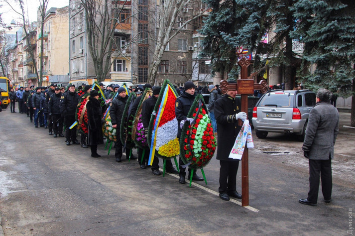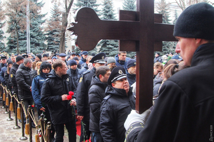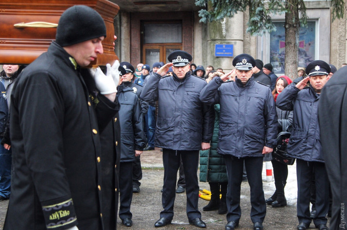 Віддати шану загиблому прийшли сотні людей: колеги поліцейського, представники органів влади, шкільні друзі та мешканці Одеси. Був присутній на панахиді і заступник міністра внутрішніх справ В'ячеслав Аброськін. Він передав родині співчуття від голови відомства Арсена Авакова і керівника Нацполіції Сергія Князєва.
