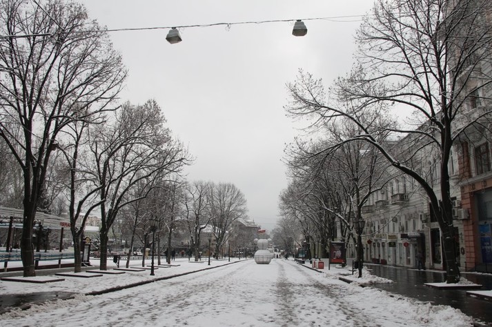 У ніч на вівторок, 6 лютого, в Одесі повалив мокрий сніг. Будинки та вулиці південного міста вкрилися пухнастою білою пеленою. Сніг майже відразу починає танути. Гідрометцентр Чорного та Азовського морів попереджає: через підвищення денної температури сніг незабаром зміниться дощем.