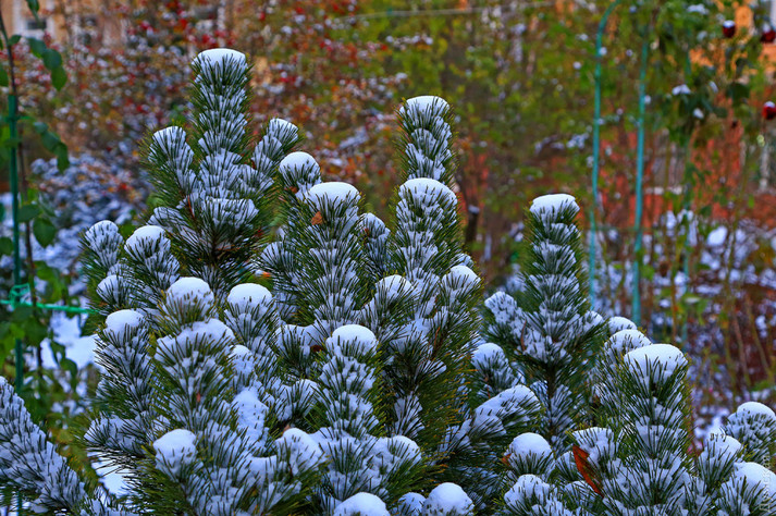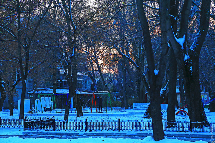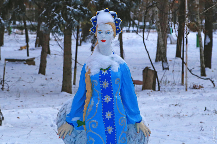 У парках і скверах біле покривало надійно вкрило квітучі троянди, опале листя і зелену травичку. Нудні скульптури в санаторіях під снігом поміняли свій образ. Наприклад, Оленка з російської казки перетворилася на Снігову королеву Андерсена.