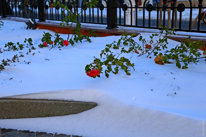 Зимовий вечір на Французькому бульварі: троянди в снігу і Снігова королева (фоторепортаж)