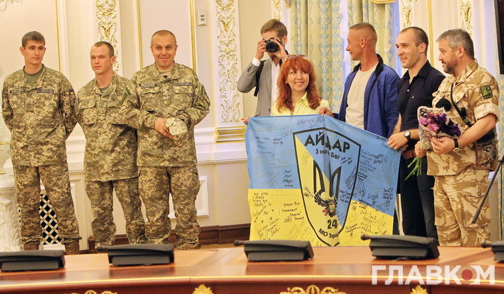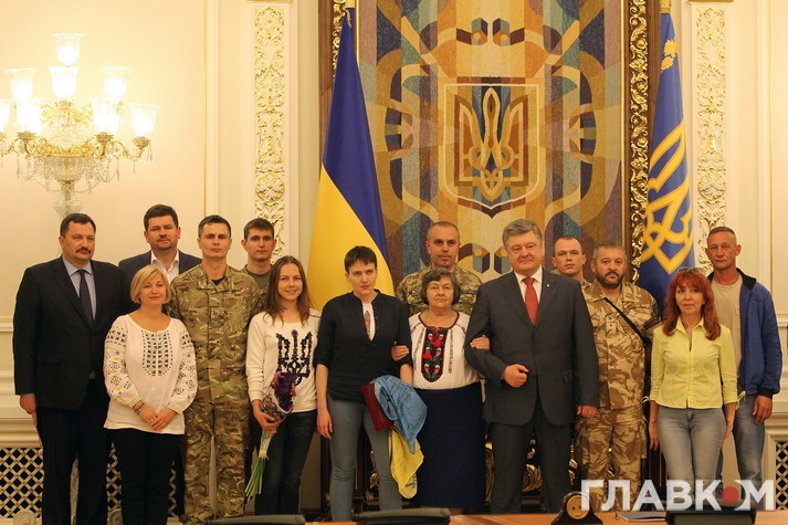 Після зустрічі та палкої промови в аеропорту Надія Савченко поїхала в Адміністрацію президента. Прес-служба глави держави кілька разів переносила початок анонсованого виступу президента на Банковій, присвяченого поверненню Надії. Подія викликала чималий ажіотаж серед преси – в зал урочистих подій набилося більше ста журналістів. З великим запізненням захід все ж почався.