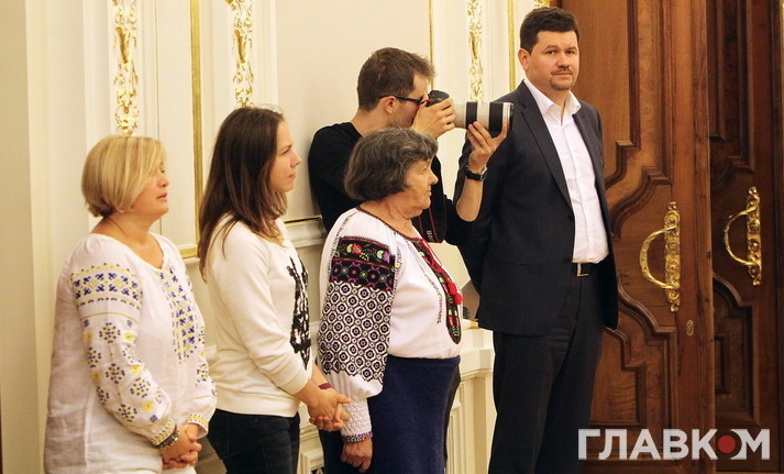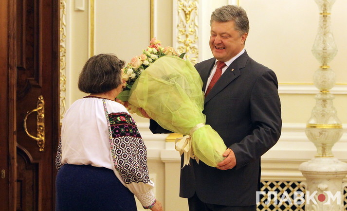 Надії Порошенко просто потиснув руку, а букет квітів подарував її матусі