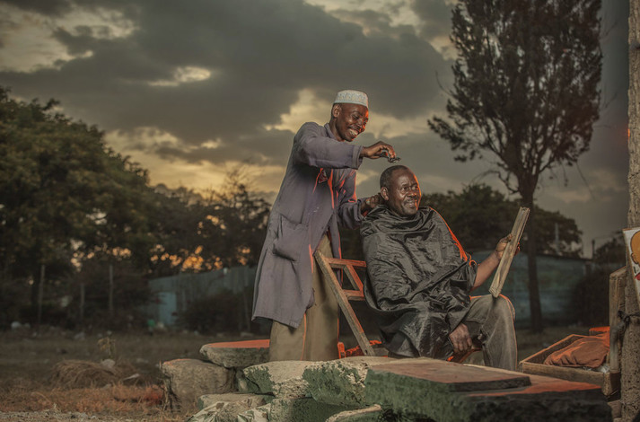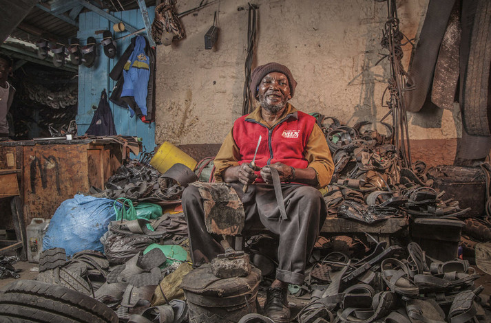 Люди на фото виглядають гармонійними незалежно від того, чим вони займаються: розмальовують гарбуза, стрижуть клієнта на вулиці або роблять взуття зі старих покришок.