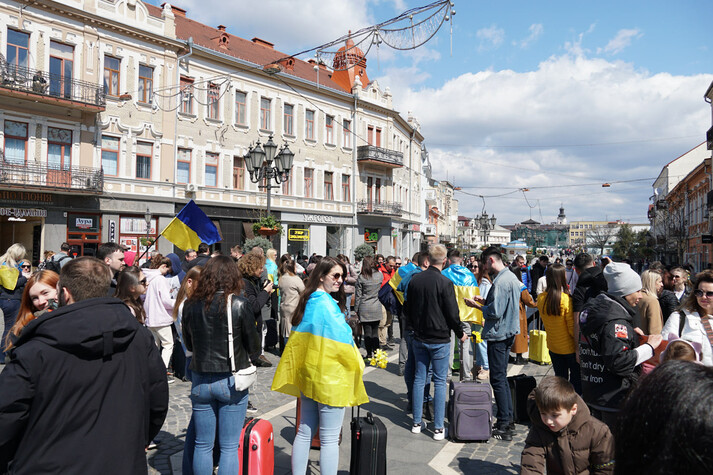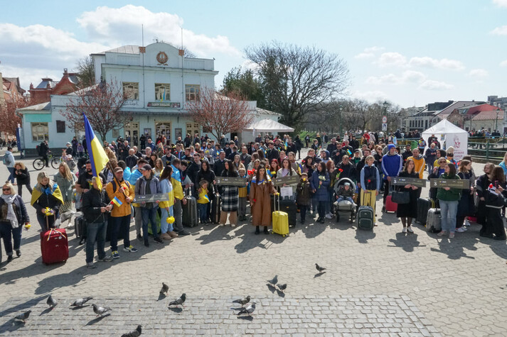 В Ужгороді пройшла акція солідарності з вимушеними переселенцями. Активісти нагадали, що в країні триває війна, люди, навіть якщо виживають і їм вдається втекти у більш безпечні регіони, потребують підтримки, допомоги, а обсяги гуманітарної допомоги з-за кордону в останні дні знижуються.