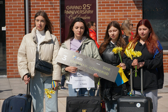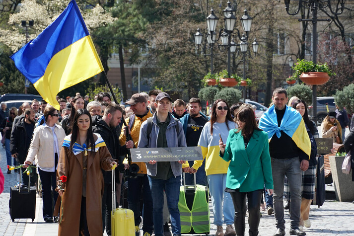«Валізи, як образ того, у що вмістилося життя мільйонів українців, гуркіт їхніх коліс, як символ вимушеного переселення через війну, використали на акції в Ужгороді», − зауважили в ужгородській міськраді.