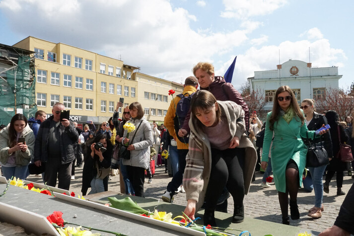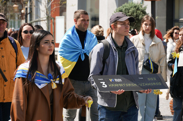 Люди пройшли із валізами з площі Шандора Петефі через пішохідний міст над Ужем на площу Театральну, там виклали символічні таблички із назвами маршрутів потягів до нашого міста, які подолали дуже багато людей, рятуючись від обстрілів, ракетних ударів, мародерства, катувань, знущань та інших жахів російської окупації. До табличок поклали квіти і вшанували мовчанням тих, чиї валізи залишилися без господарів.