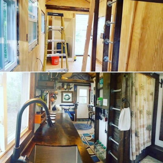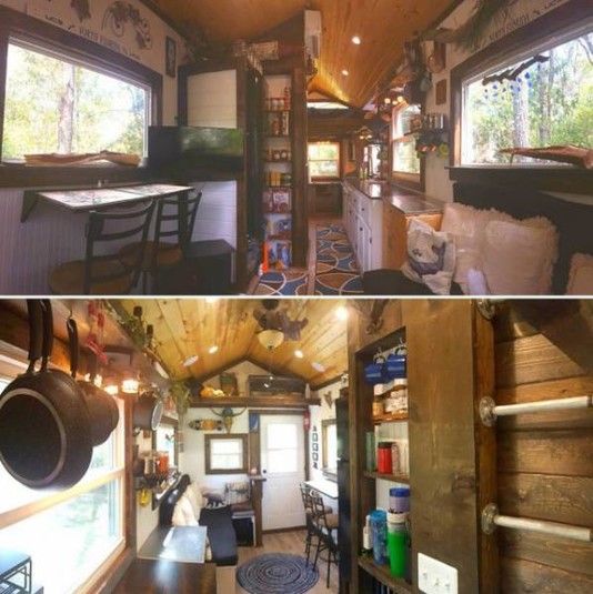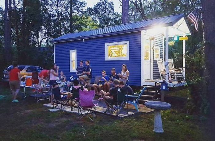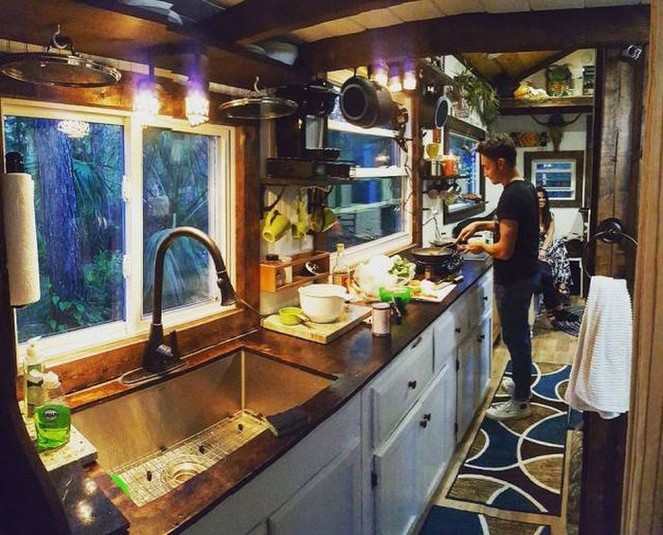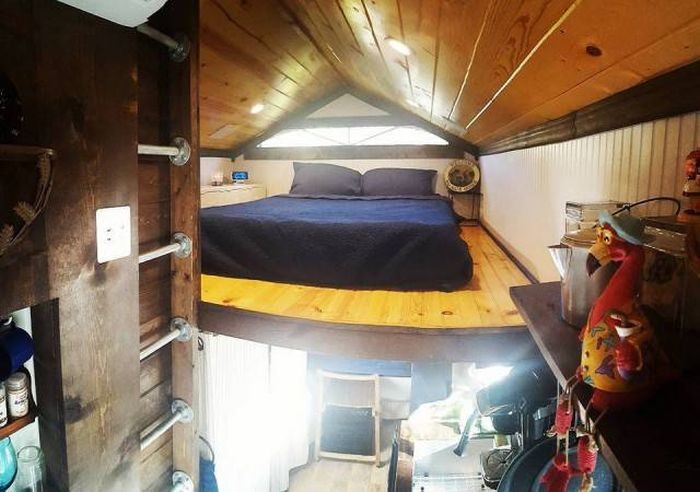 Він знайшов старий 8-метровий трейлер і побудував на ньому своє житло площею 21,4 квадратних метра. На будівництво будинку було витрачено 14 000 доларів, але зате в ньому є все необхідне для комфортного життя, тут навіть можна влаштовувати вечірки.
