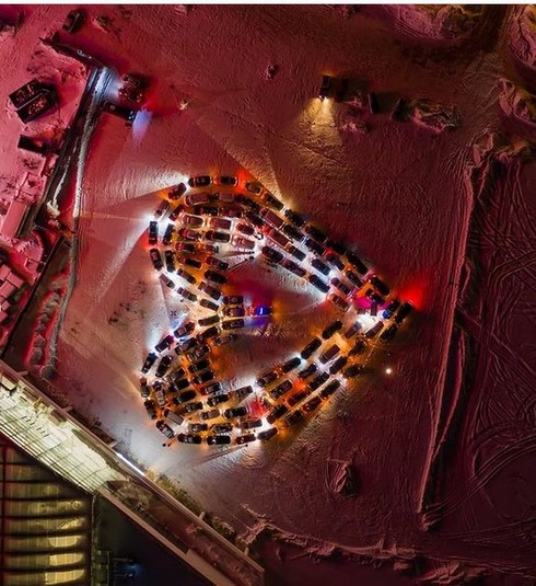 Як повідомляється, найбільша валентинка складається з 110 автомобілів. Її створили біля одного з торгових центрів у столиці.