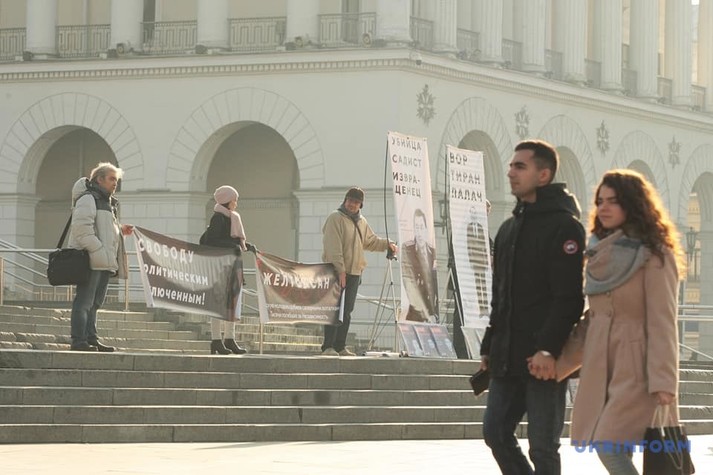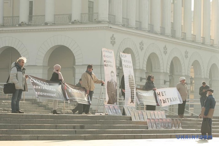 Як повідомляє «Укрінформ», кілька учасників акції тримали плакати: «Свободу політичним в'язням», «Ні катуванням!».