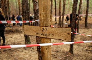 Як повідомляє Watchers Media, на цьому кладовищі поблизу Ізюма поховано близько 500 людей. За даними перших оглядів, серед них є закатовані та вбиті у жорстокий спосіб.