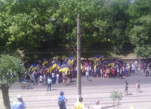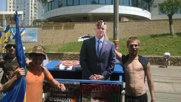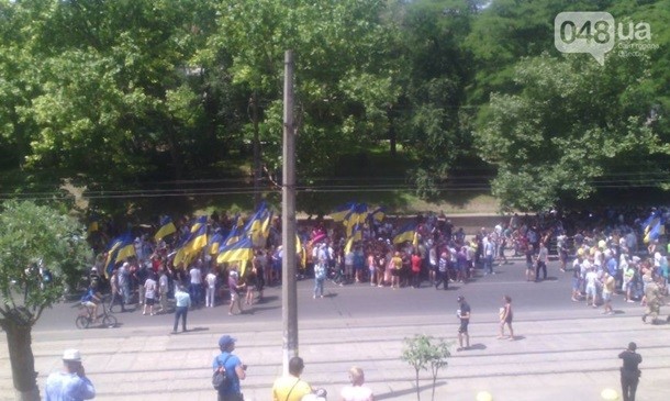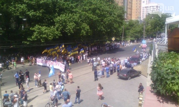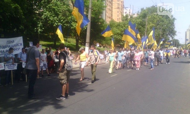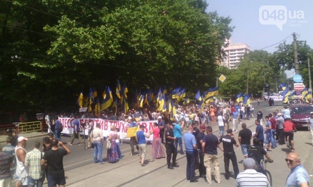 При цьому активісти пікетують готель Gagarinn, де триває Український муніципальний форум. У ньому бере участь мер міста Геннадій Труханов, проти якого виступають мітингувальники. Вони вимагають його відставки.
