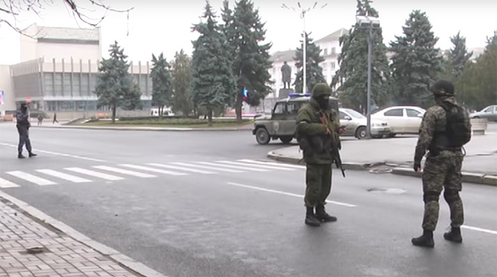 Бойовики в масках з нашивками «Беркут» оточили центр Луганська