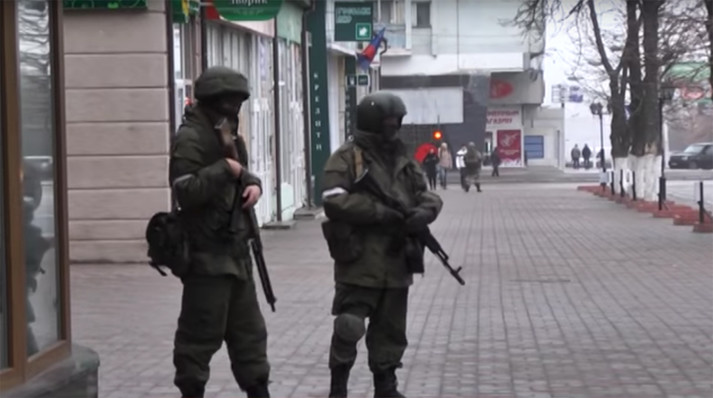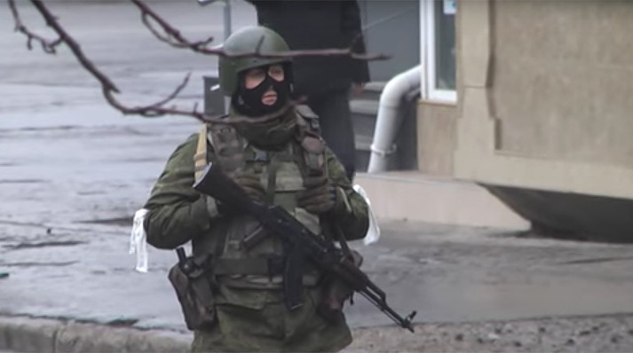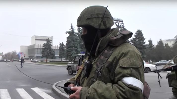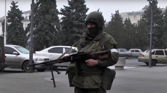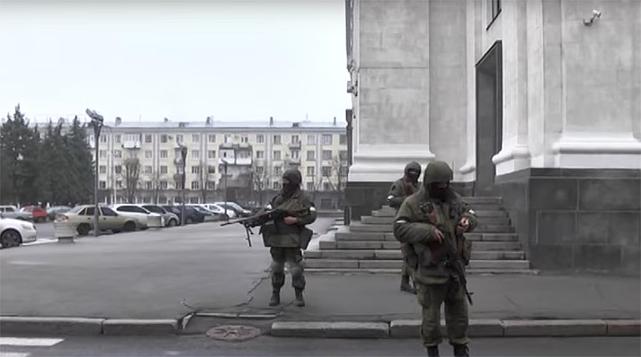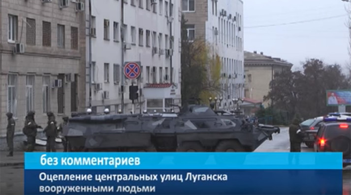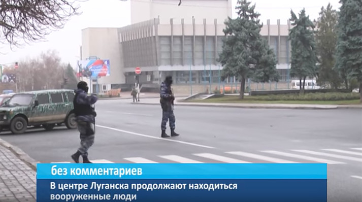 У центрі окупованого Луганська біля будівлі «місцевої адміністрації» з'явилися озброєні люди без розпізнавальних знаків, вони блокують ряд вулиць і не представляються.