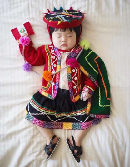 Лора Ізюмікава фотографує свою доньку Джой-Марі уві сні в екстравагантних і смішних нарядах, за що отримує безліч відміток «мені подобається» в Instagram. Останнім часом Джой-Марі вражає своїх шанувальників образами в національному одязі різних країн.