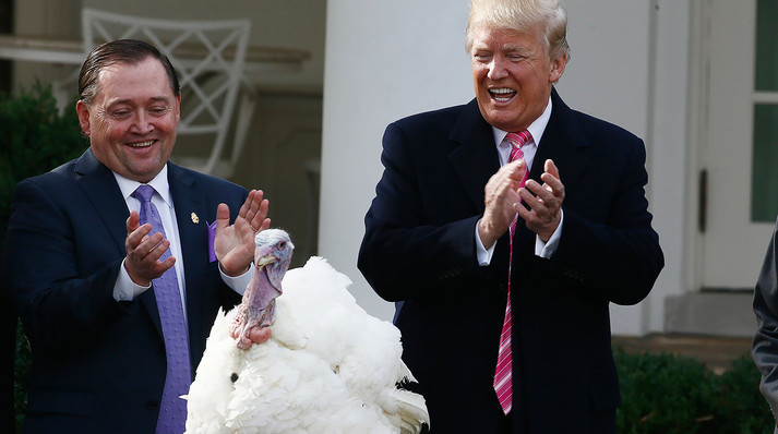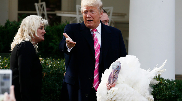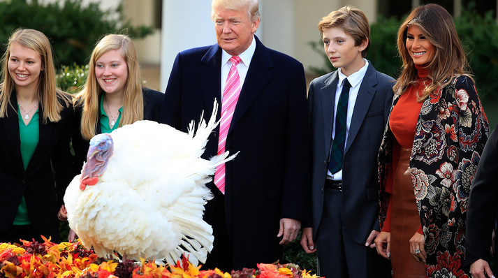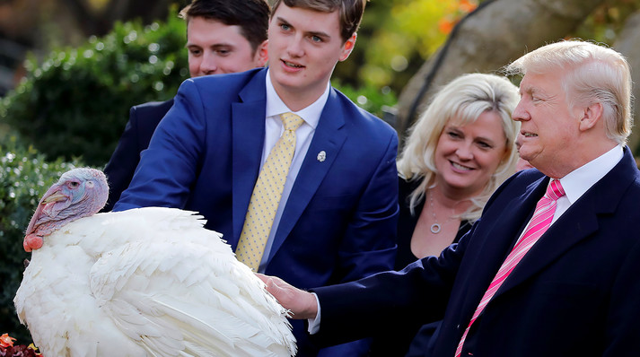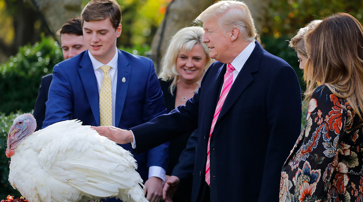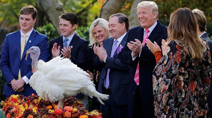 Президент США Дональд Трамп помилував свою першу індичку: «Це великий птах ... Ух, я так добре себе почуваю», - пожартував Трамп, гладячи птицю. На церемонії також були присутні перша леді США Меланія Трамп і молодший син Трампа Беррон.
