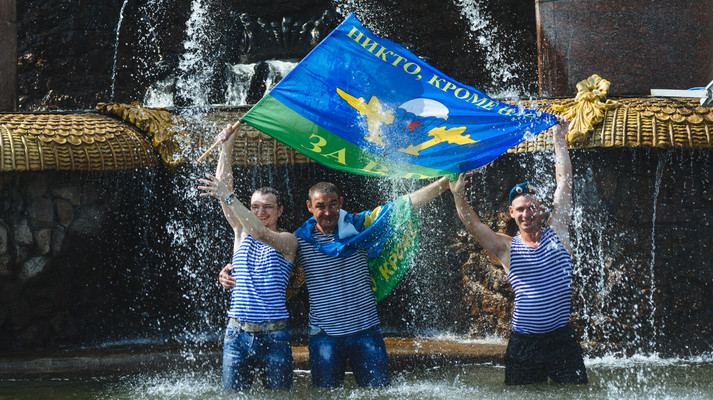 2 серпня в Росії відзначають День Повітряно-десантних військ За традицією в Москві десантники збираються у парках і купаються у фонтанах. 13 фото На весь екран