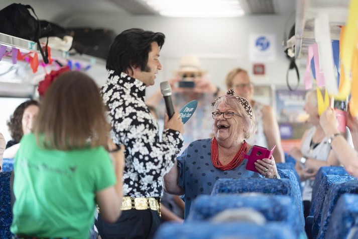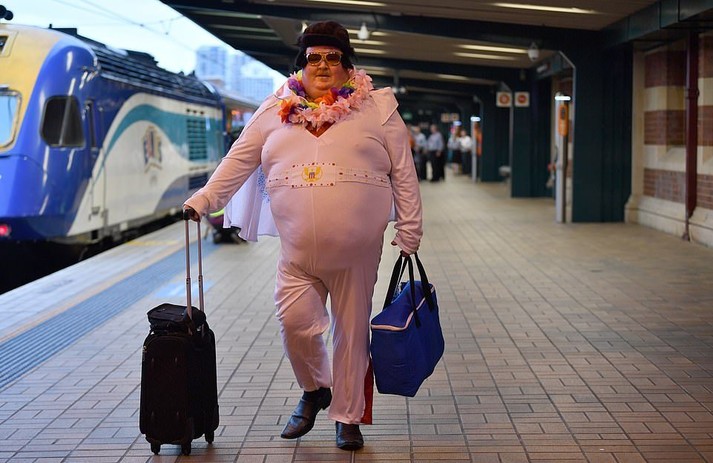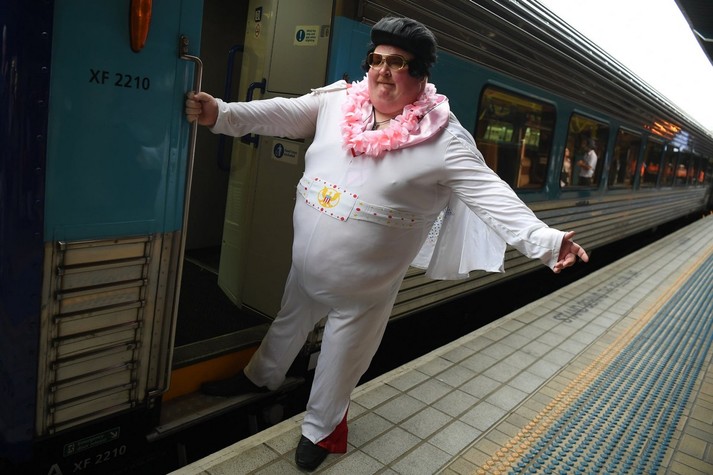 Десятки наслідувачів легендарного Елвіса Преслі зібралися на Центральному вокзалі Сіднея вранці 9 січня, щоб сісти в Elvis Express. Після семигодинної поїздки поїзд доставить їх в Паркес, де щорічно проводиться фестиваль, присвячений королю рок-н-ролу.