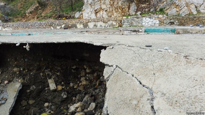 Перший обвал тут стався восени 2015 року. У квітні 2016 року голова окупованого Росією Криму Сергій Аксьонов заявляв, що з бюджету буде виділено 20 мільйонів рублів на ліквідацію провалу.