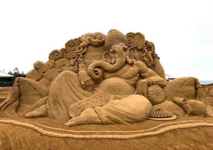 Японський скульптор Тосіхіко Хосака використовує для створення своїх робіт пісок.