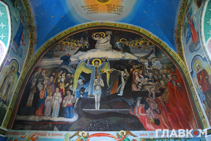 У православних храмах Страшний Суд традиційно зображується на протилежній від вівтарної частини стіні. Сюжет - стандартний. Господь судить людей. По праву Його руку – праведники, яким дароване життя вічне. По ліву – грішники, яких кидають в геєну вогняну.