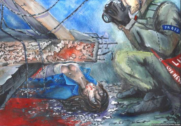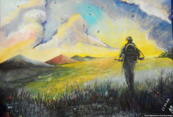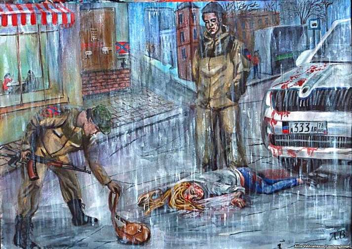«Коли почалася війна, потреба висловити те, що відбувається всередині мене і навколо, стала гостріше. І я почала малювати картини, присвячені війні та Донецьку в окупації», – розповідає вона.
