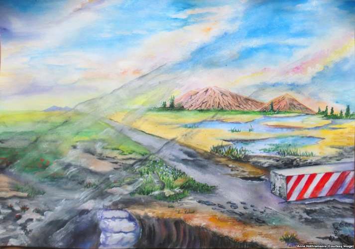 Коли влітку 2016-го довелося залишати окуповане місто, Анна повезла з собою через блокпости і свої картини, зашивши їх у дно сумки: «Роботи виконані на аркушах А4, лише одну я змалювала на полотні – так їх було легше вивозити, ніж великі полотна», – каже художниця. До Дня Донецька, яке відзначали в останню неділю серпня, Радіо Донбас.Реалії пропонує вашій увазі роботи Анни Вахрамеєвої, присвячені рідному місту.