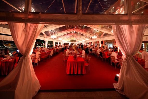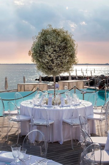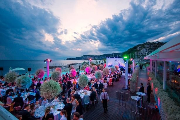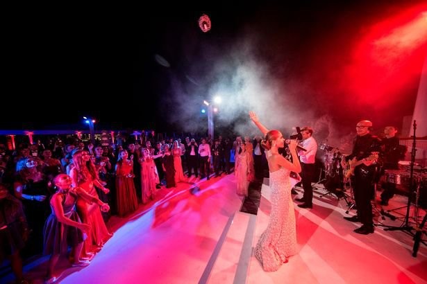 Після церемонії, щаслива пара і їх гості вирушили в шикарний готель, розташований за 20 км від міста. Гості веселилися і вечеряли на березі моря.