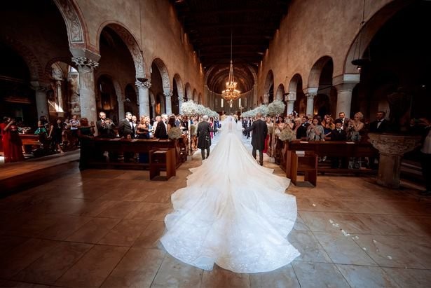 Розкішне весілля відбулося в італійському місті Трієсті, в соборі Сан-Джусто. Привітати пару прийшло близько 250 близьких друзів і родичів.