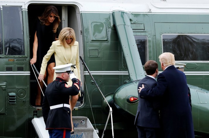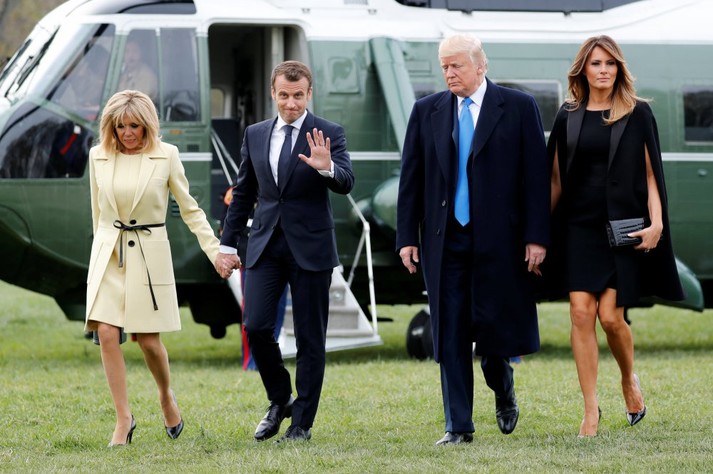 Дружини Трампа та Макрона вразили короткими сукнями під час зустрічі президентів (фото)