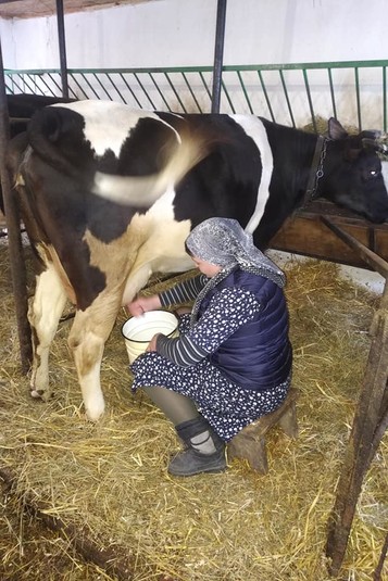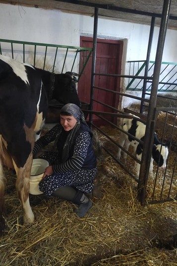 Так, на знімках ексдепутатка доїть корову, напуває теля, топить піч, обробляє розсаду та підмітає. Також є ідилічні фото котиків.