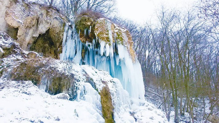 Фантастичне видовище: як виглядає замерзлий водоспад на Дністрі