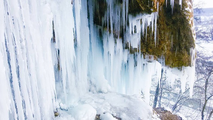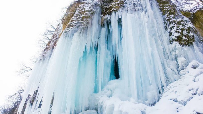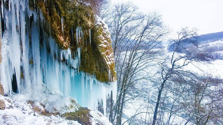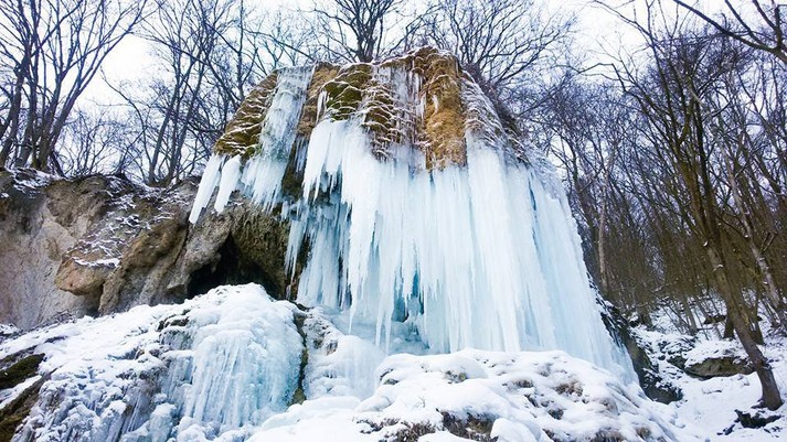 У селі Ісаків Тлумацького району на Івано-Франківщині замерз унікальний травертиновий водоспад «Дівочі сльози».