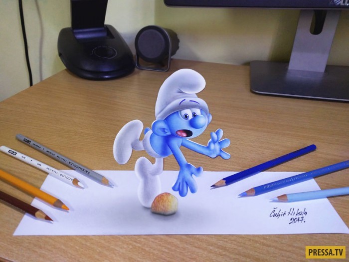 Завдяки олівцям і маркерам Нікола створює досить реалістичні 3D-зображення на звичайному папері.