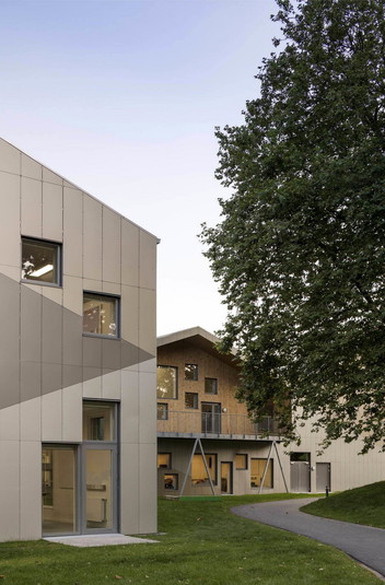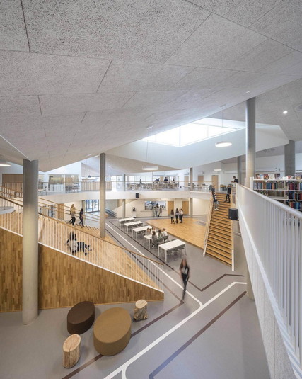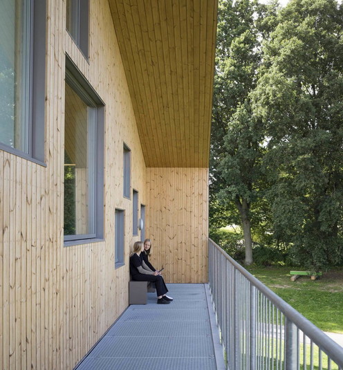 Проектувальники прагнули зберегти якомога більше дерев, оскільки вони створюють м'який перехід до зеленого середовища, яке оточує школу. Кілька дерев, які довелося зрубати, були використані в інтер'єрі як елементи обстановки. Крім того, дерев'яні панелі підкреслюють всі входи, а всередині присутні незвичайна сходи, яка також зроблені з дерева.