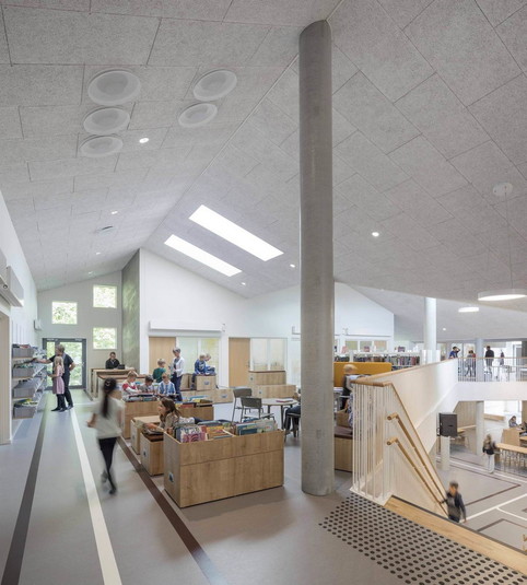 Школа спроектована як двоповерхова споруда. Архітектори вирішили використовувати двосхилі дахи і масштаб, який орієнтований на людину та створює доброзичливу атмосферу.