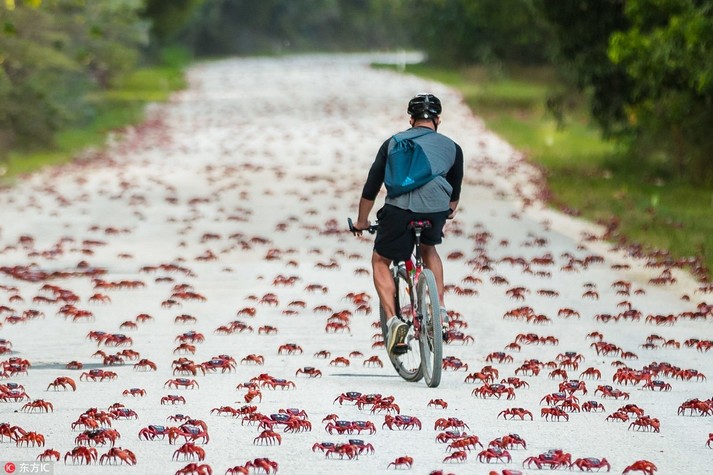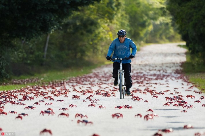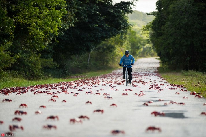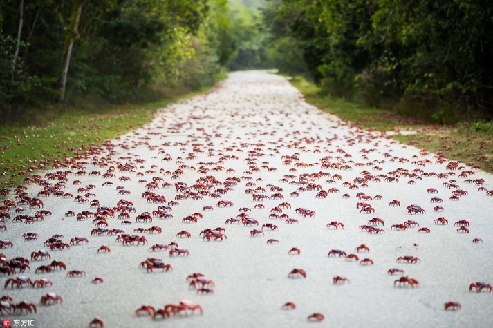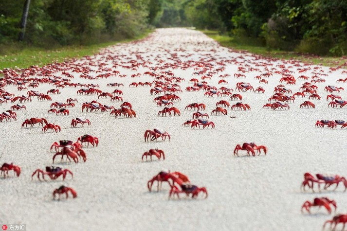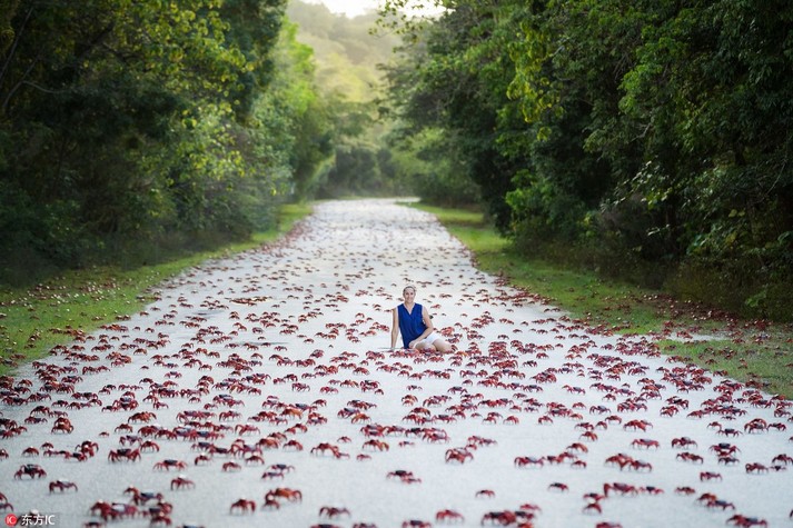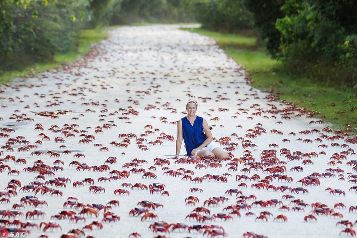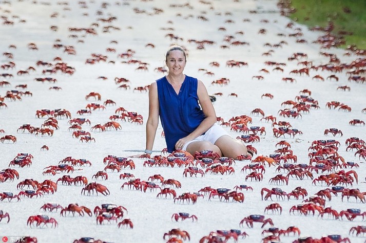 40-річна Кірсті Фолкнер стала свідком щорічної міграції червоних крабів на острові Різдва. Масова міграція приблизно 45 мільйонів ракоподібних починається на початку сезону дощів в жовтні або листопаді кожного року. Дорослі краби залишають свої нори в джунглях і поспішають на пляж для купання в океані, щоб поповнити запаси солі в тілі і залишити потомство.