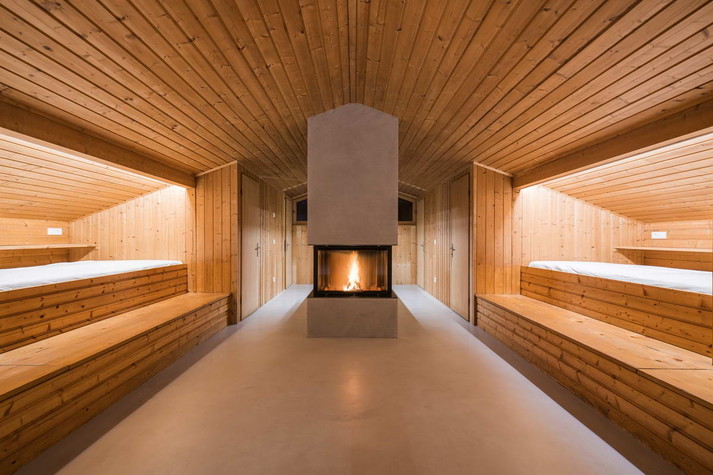 Балкон шале був замінений легкою конструкцією з невеликих балок. Діагональні сталеві балки, закріплені на бетонних стовпах, підтримують цю конструкцію. Це нове рішення пропонує вдвічі більше місця, ніж раніше.