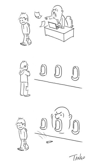 Простота стилю виконання поєднується з продуманим і несподіваним задумом, який майстерно поєднується з намальованою ситуацією.