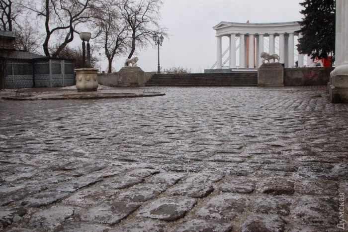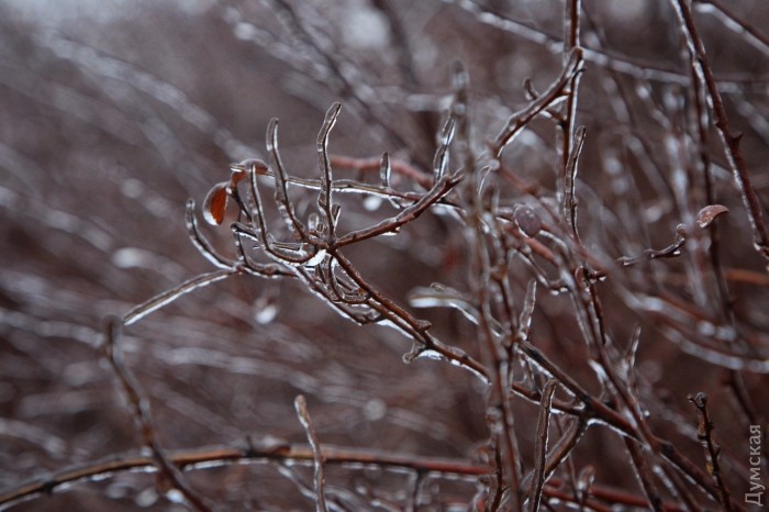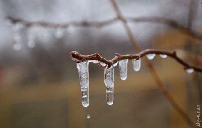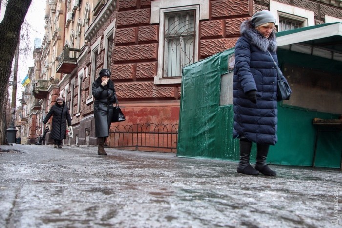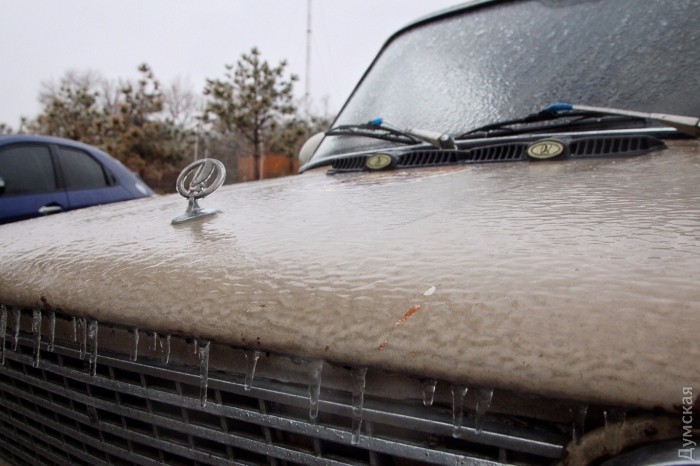 Одесу заливає крижаною глазур'ю: дрібний дощ при нульовій температурі миттєво перетворюється на тонкий крижаний шар і вкриває все, від асфальту до одягу перехожих.