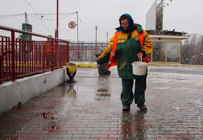 Двірники працюють від раннього ранку, але посипати всі доріжки і тротуари піском комунальники не встигають.