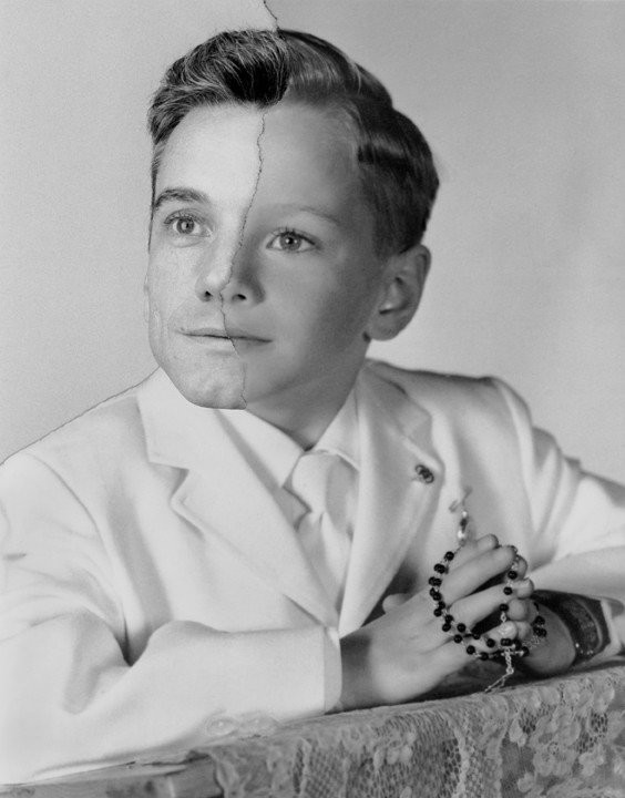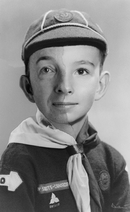 «У темній кімнаті я оцінював обидва знімки і робив відбитки в однакових пропорціях. Коли фотографії висихали, я розривав останній портрет, накладав його поверх шкільної фотографії та склеював», - описав свої маніпуляції Адамс.