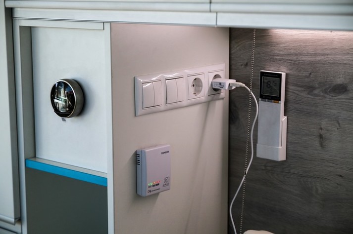 Температура в будинку контролюється за допомогою термостатів Nest, також в будинку працює система контролю якості повітря (визначає рівень СО2 в приміщенні).