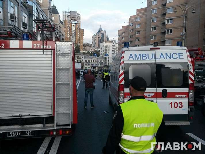 Трагедія сталася між вул. Басейною та Великою Васильківською. Автомобіль повністю знищений. Усередині салону була жінка, її оперативно дістали з машини, «швидка» відвезла її в лікарню.